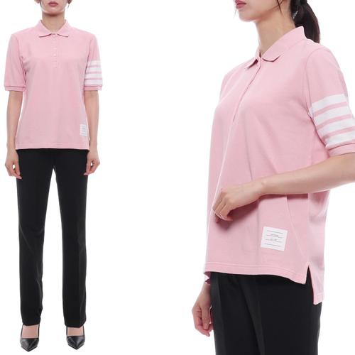 [톰브라운]25FW 여성 사선 스트라이프 폴로 반팔티셔츠 (FJP052G 07976 680 25F)
