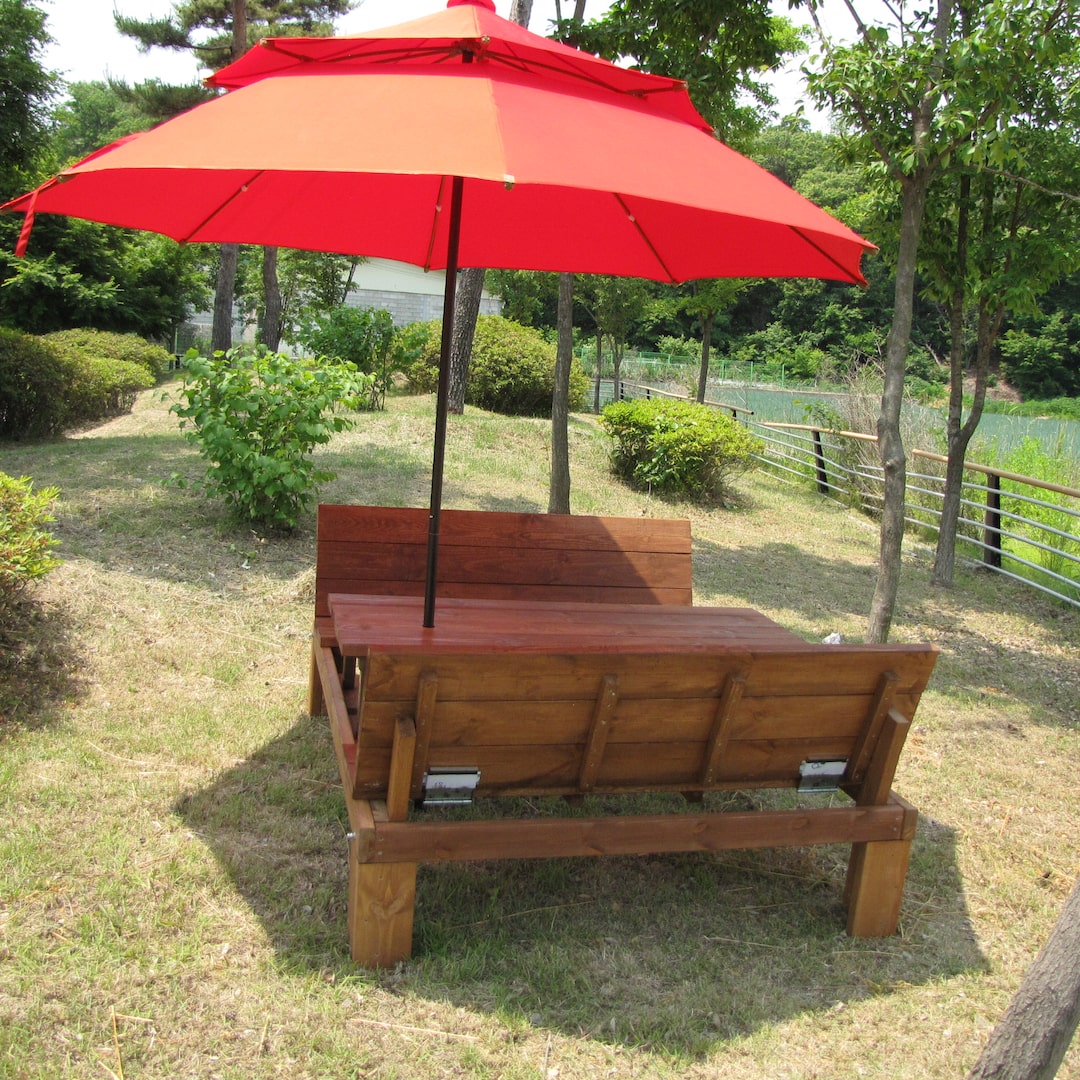 미엔우드 정품형 야외 원목 테이블 세트 4인 무도색 야외용 평상 벤치 탁자 파라솔