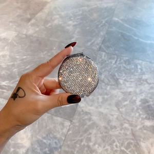 TEMU 1개 럭셔리 스타일 반짝이는 메이크업 미러 - 플립 커버가 있는 컴팩트 여행용 거울, 여성용 휴대용 화장 거울, 홈, 살롱, 파티용 - 배터리 불필요, 우아한 선물 아이디어, 핸드헬드 미러, 파티 필수품, 고급 디자인, 내구성 있는 프레임, 뷰티 애호가를 위한