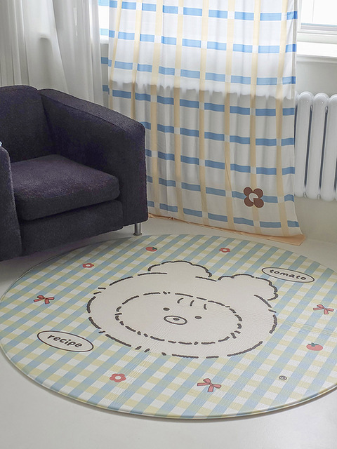 [러움] 토마토베어 원형 층간소음매트 pvc 거실 침실 아이방 방수 다용도 쿠션