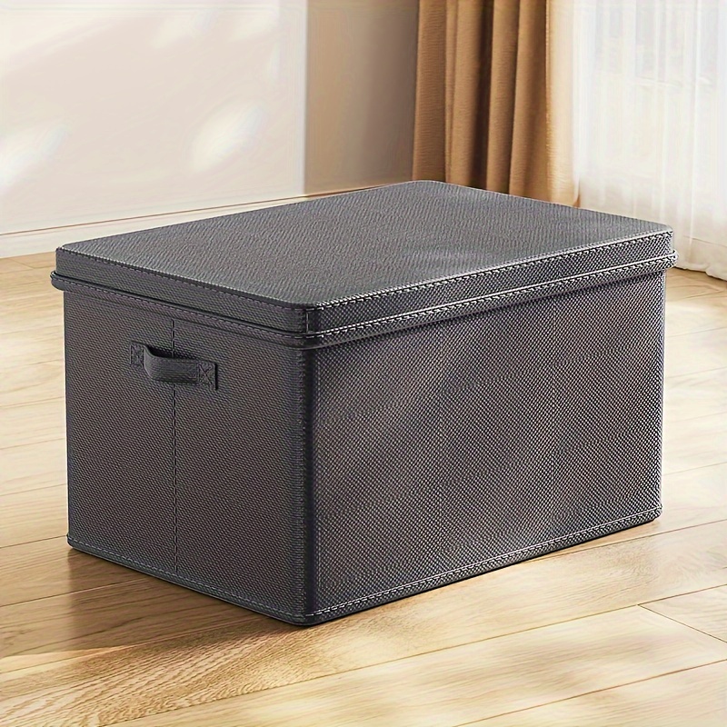 TEMU 1개 대형 패브릭 보관함 뚜껑 포함 – 옷, 장난감 등을 위한 회색 휴대용 정리함 – 옷장, 침실, 사무실 정리에 완벽 – 손잡이가 있는 견고한 디자인으로 쉽게 운반 가능, 옷 정리 보관함