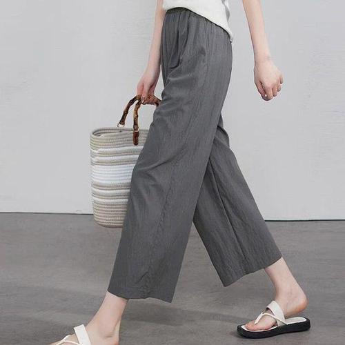 여성 여름 고무줄 스트레이트 아이스 실크 봄가을 9부바지/빅사이즈/슬랙스/50대/면/통바지