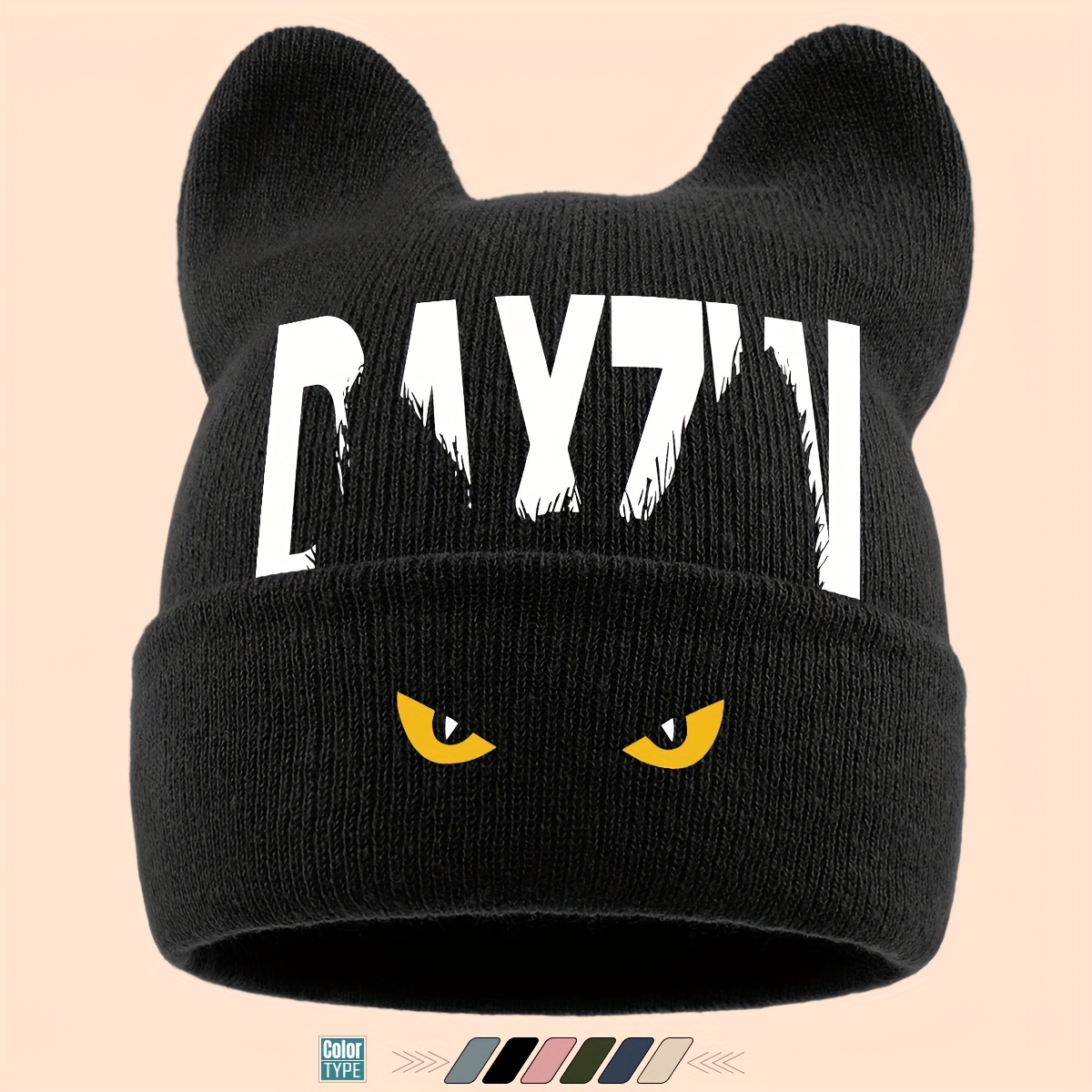 TEMU 1개 크리스마스 개성 고양이 귀 비니 모자, 귀여운 고양이 프린트, 남녀공용 휴대가 편리한 비니, 가을 겨울 추위 방지 모자, 가볍고 휴대하기 쉬운 커플용 따뜻한 야외 스컬 캡, 귀여운 겨울용 따뜻한 비니, 달콤하고 장난기 많은 디자인, 겨울 여가와 휴가 여행에 적합, 아름다운 할로윈과 크리스마스 선물