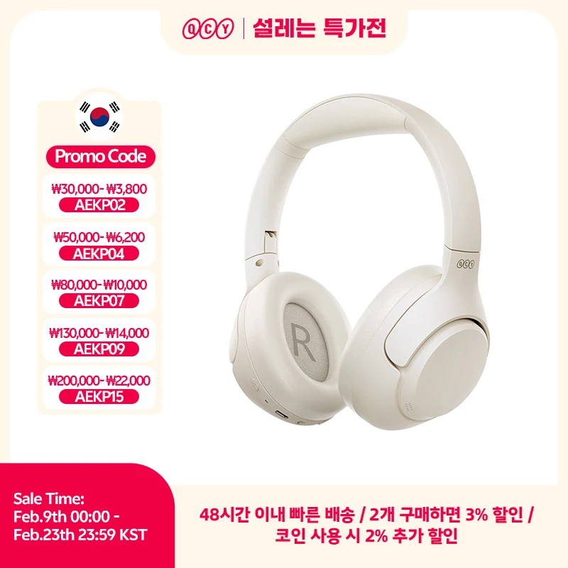 큐씨와이 H3 ANC 무선 헤드폰, 블루투스 5.4, 고해상도 오디오 오버 이어 헤드셋, 43dB 하이브리드 액티브 노이즈 캔슬링 이어폰, 60H