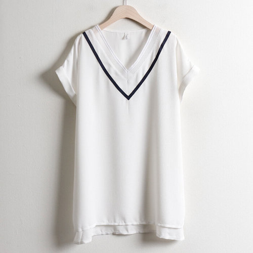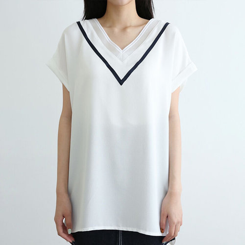 나야홍 / 아이우먼 배색브이롤업블라우스 DB0341M505 빅사이즈