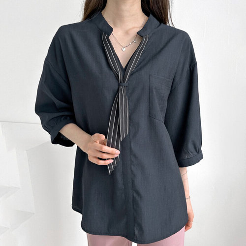 나야홍 / 아이우먼 배색브이롤업블라우스 DB0341M503 빅사이즈