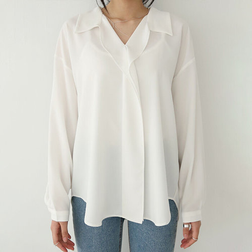 나야홍 / 아이우먼 실버브이넥블라우스 DBE093M505 빅사이즈