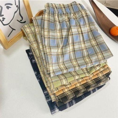 [에이치플러스몰]체크 홈웨어 캐주얼 와이드 통 필수템 팬츠 여름 아이