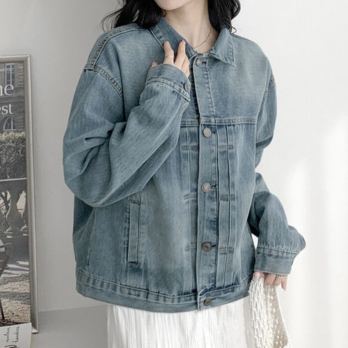 [아이에스이랩]남여공용 오버핏 데님 긴팔 셔츠 청 자켓 I3SH017Q