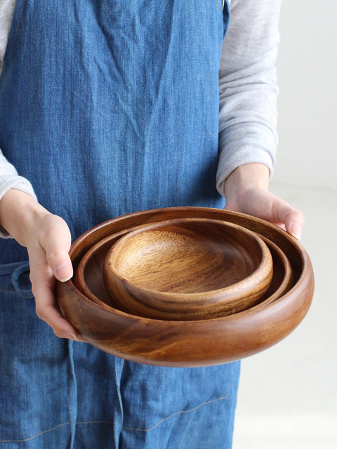 [아카시아] 아카시아통원목 나무 우드그릇 우드볼 낮은형 오목볼 3사이즈