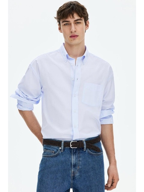 [더셔츠스튜디오] 화이트 루즈핏 면혼방 옥스포드 버튼다운 셔츠 (TSS601)