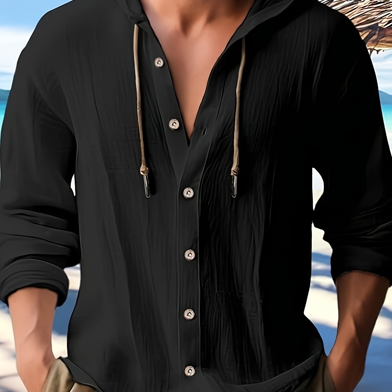 TEMU 1개 남성 패션 캐주얼 비치 스타일 후드 긴팔 오픈프론트 셔츠 | 피부 친화적 부드러운 직조 린넨 셔츠 | 95% 린넨 5% 폴리에스터 | 필수 골프 비치 아웃핏 | 통기성과 가벼움 | 실내 모임 및 야외 스포츠용 | 워드로브 필수 캐주얼 휴가 트렌디 스타일 | 사계절 적합: 봄, 여름, 가을, 겨울