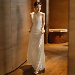 2부 드레스 화이트 XS 원피스 반짝이는 민소매 프렌치 스팽글 보석처럼 가녀