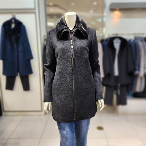 [조순희]고급스럽고 세련된 카라밍크 알파카 하프코트 JNWC506 BK