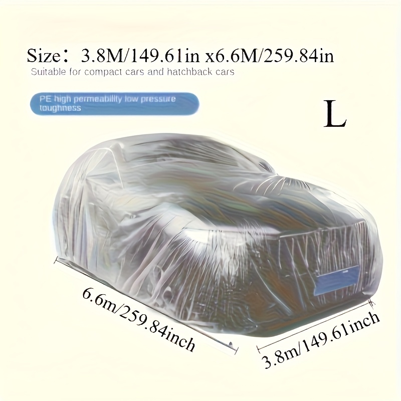 TEMU 2025 헤비듀티 올시즌 카커버 - 헤비듀티 PE 필름 방수, 방진 투명 차량 커버, 다양한 사이즈 옵션, SUV, 트럭, 오토바이에 맞춤형 - 휴대용 야외 주차 보호