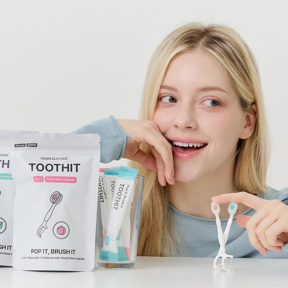 투스잇 5 in 1 일회용 미니 칫솔 휴대용 여행용 치실 이쑤시개 혀클리너 10개입
