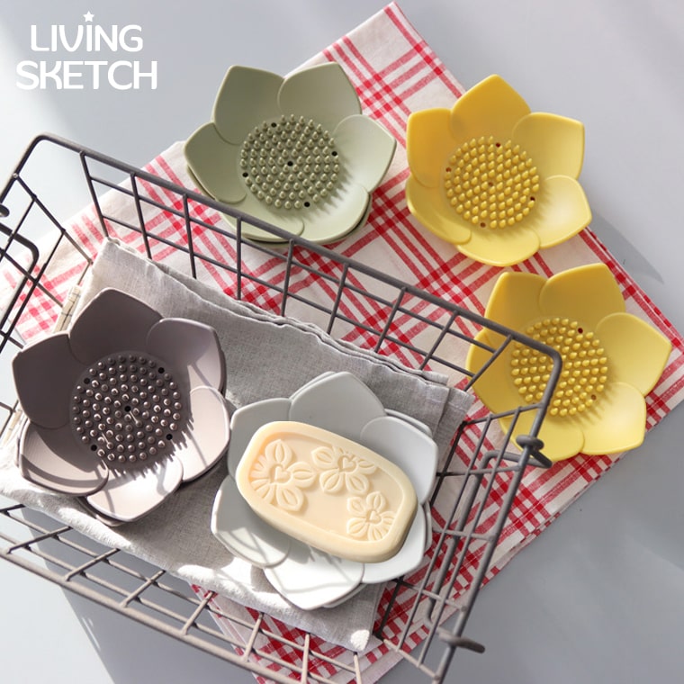 연꽃 실리콘 비누 받침대 2P 국내제작 다용도 물빠짐 수세미 거치대