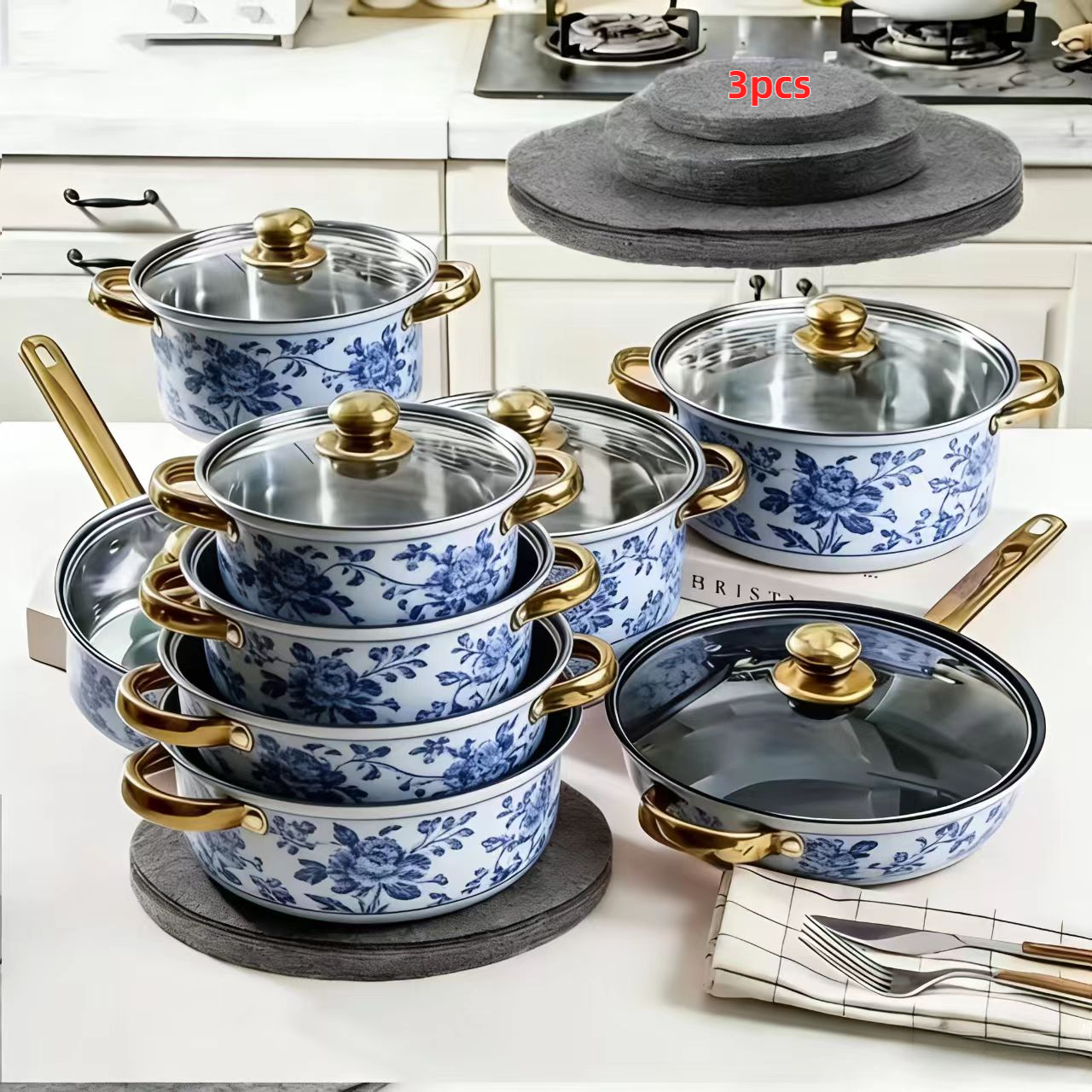TEMU 3개 세트/ 3가지 사이즈 두꺼운 내열 스크래치 방지 패드, 압력솥 보호 매트, 미끄럼 방지 패드, 고품질 주방용품 보호 펠트 패드, 수납 가능, 조리기구, 유리 용품, 식탁, 스토브, 오븐에 적합