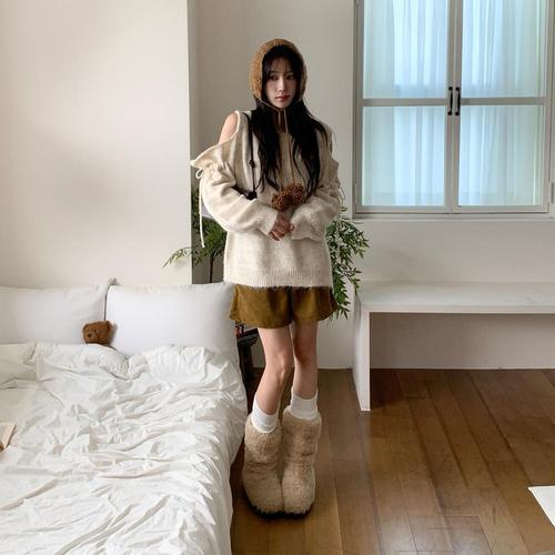 [다잇템][다잇템] 여성 슬릿 리본 혼합 박시 앙고라 울 니트_23592373_588872