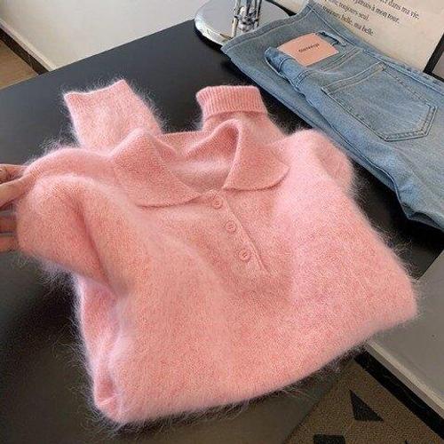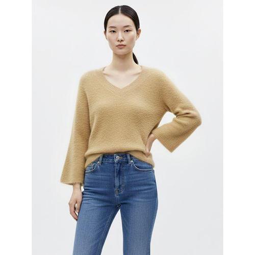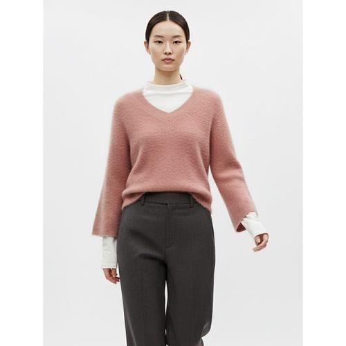 여성 세련된 겨울 스웨터 라쿤털 브이넥 캐시미어 추동 보들보들 앙고라 니트 톱 스포M4
