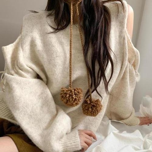 [옷자락]여성 울앙고라 리본포인트 루즈 니트