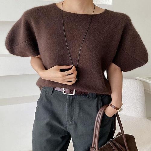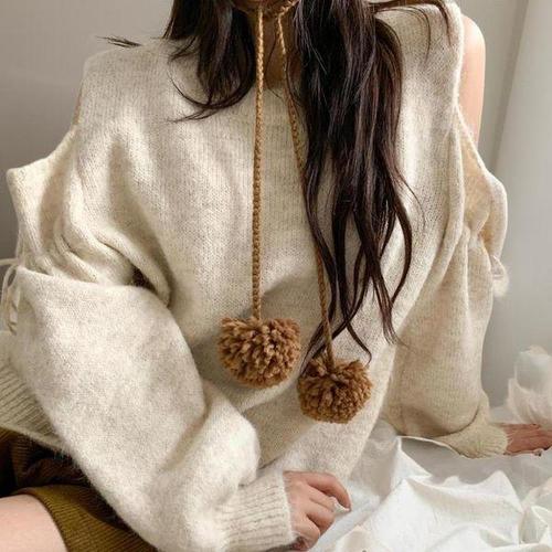 [옷자락] 여성 앙고라 혼합 울 리본 트임 루즈 니트