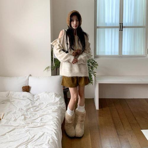 [에이치플러스몰]앙고라니트 호피니트 여성니트티 스웨터 어깨트임