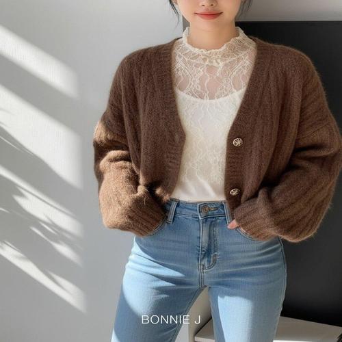 [보니제이]포근 여성가디건 크롭 보들 앙고라 V넥 아우터 털니트
