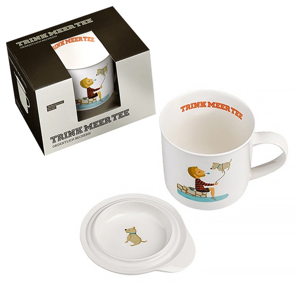 TMT 북유럽 일러스트 뚜껑 머그컵 400ml 강아지 도자기 머그잔