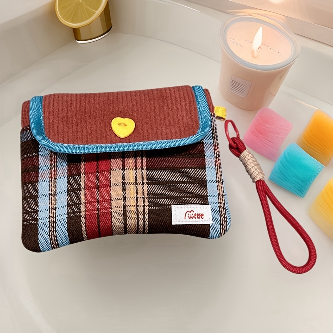 TEMU 다기능 코듀로이 수납 가방 | 대용량 휴대용 생리대 및 생리대 보관, 격자 무늬, 버클 잠금, 선물 및 가족에게 이상적인 선물