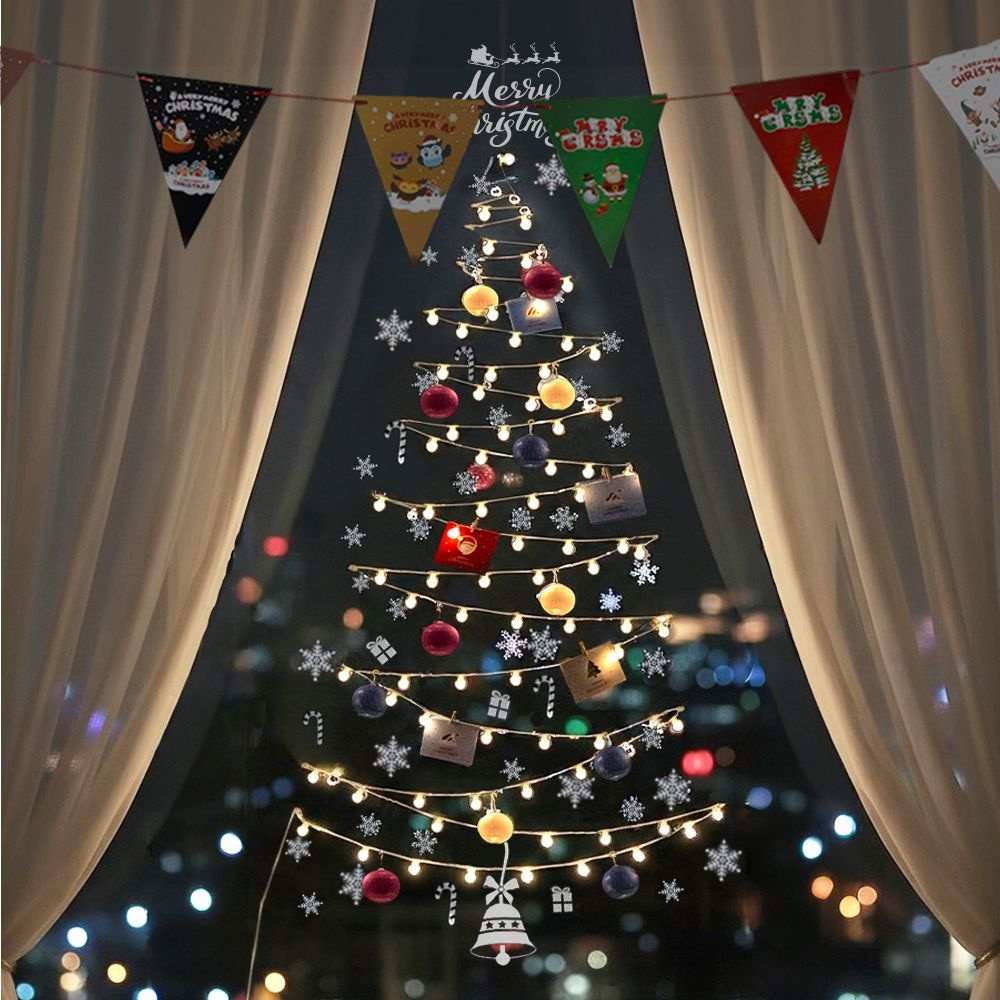 북유럽 감성 크리스마스 벽트리 벽걸이 가정용 와이어 자작나무 앵두전구