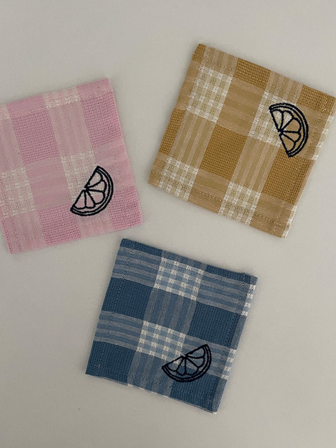 [레몬베이스볼 리빙클럽] 레몬 로고 자수 체크 코스터