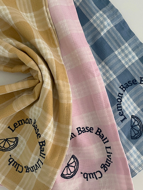 [레몬베이스볼 리빙클럽] 레몬 로고 자수 체크 키친클로스