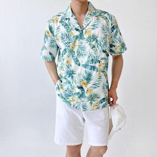 [리빌모아]여름 남자 하와이 꽃무늬 야자수 반팔 셔츠 SD-SHH-SDK1002091