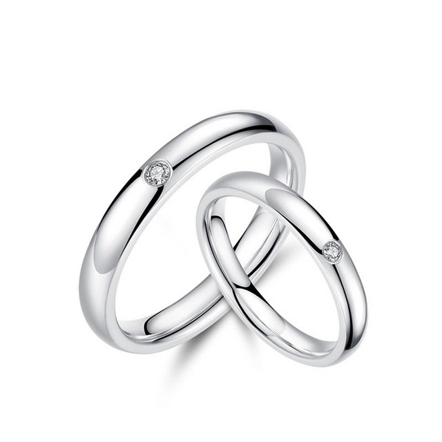 FANSYLI 결혼 반지 큐빅 커플 반지 1쌍 심플 은도금 프러포즈 반지 사이즈 조절 가능 큐빅 반지 W2503M0505