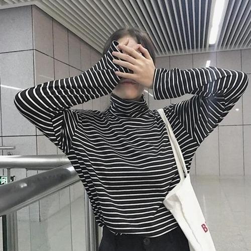 [엄지척]여성용 얇은 상의 긴팔티 터틀넥 스트라이프 롱슬리브_19610852_667501