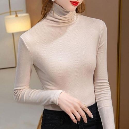 [엄지척]여성 가을 간절기 하이 터틀넥 잔골 얇은 긴팔 티셔츠_19554413_667501