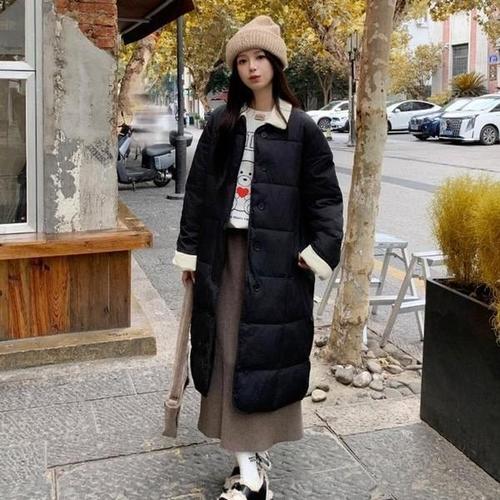 [셀러허브_여성트랜드패션]ONM 히든버튼 탈부착 코듀로이 카라 롱패딩 얇은 패딩