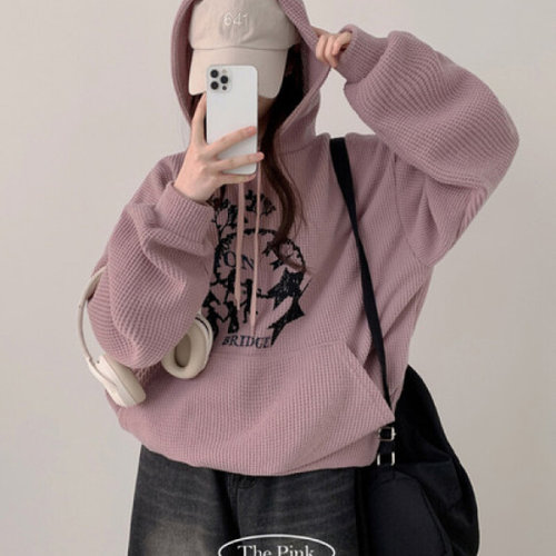 더핑크 / 텐지 오버핏 프린팅 골지 양기모 후드티