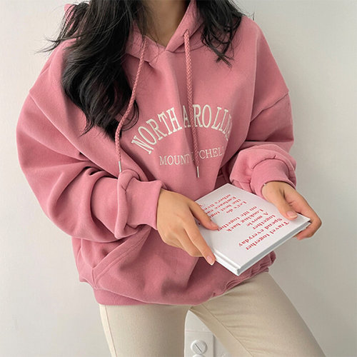 더클립 / 캐롤라이나 레터링 자수 오버핏 양기모 후드 티셔츠