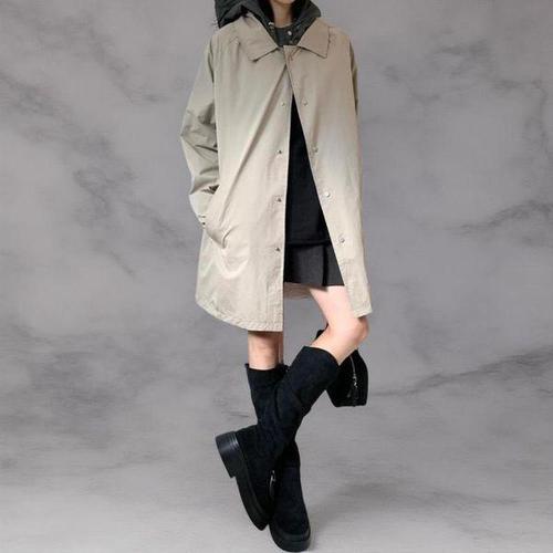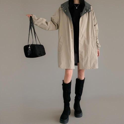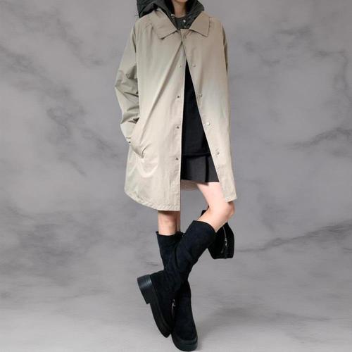 [신상오픈런]여성 나일론 혼합 바람막이 양면 후드 미디 점퍼