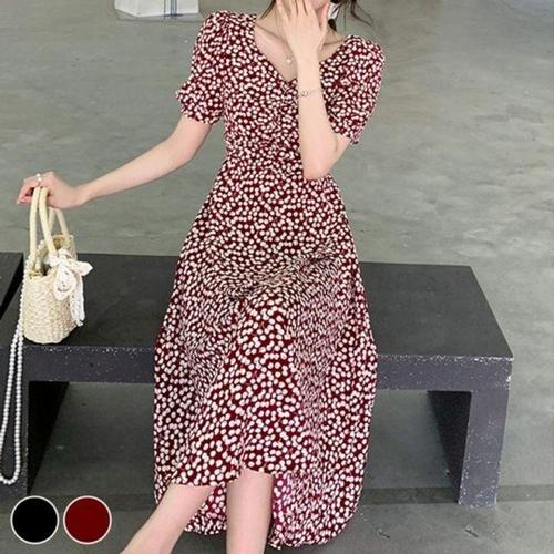 [모노무드]모노무드 xmfl-2 여성 여름 원피스 셔링 어깨 롱 트임 대 플라워