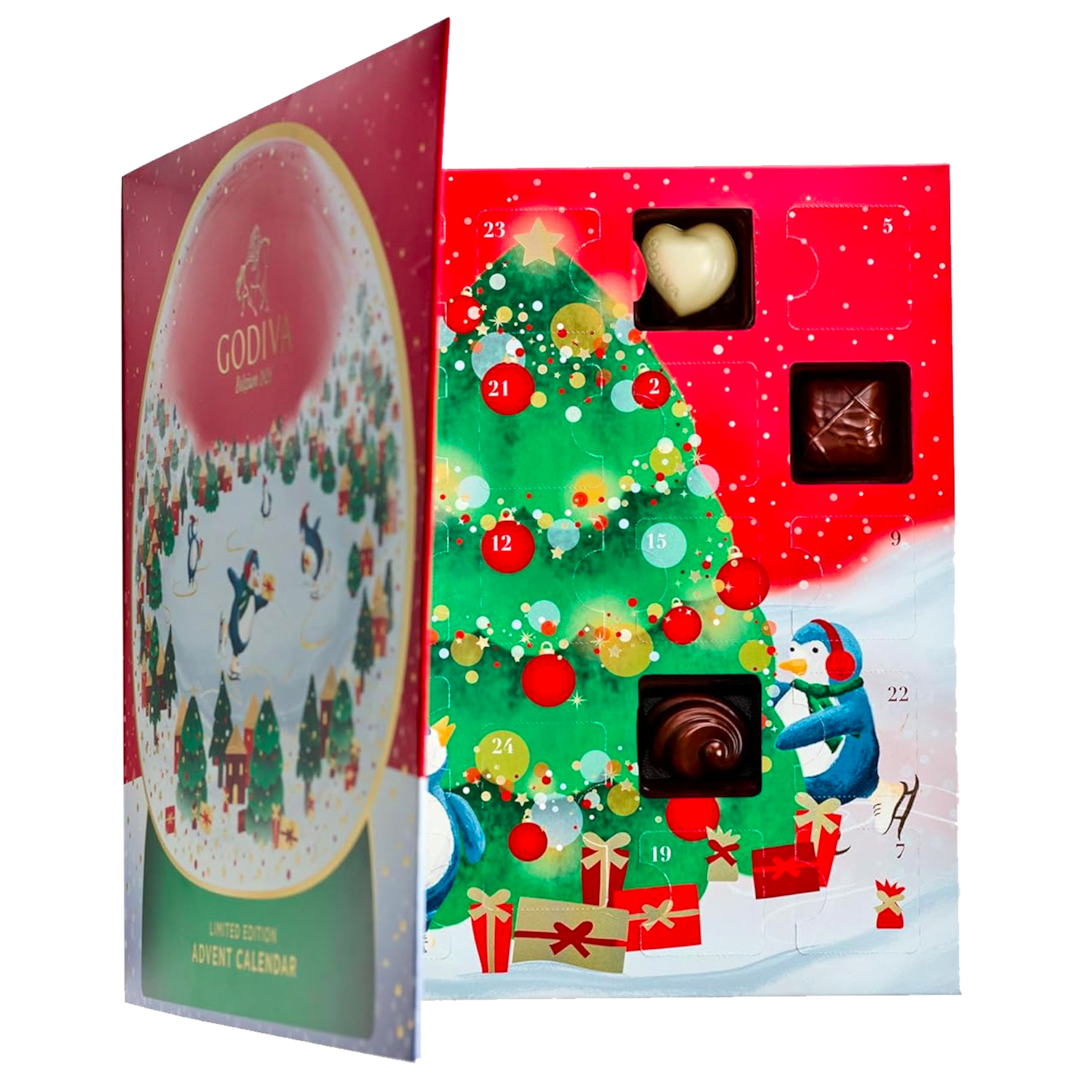 고디바 2025 어드벤트 캘린더, 한정판 디럭스 스노우글로브 초콜릿 모음 크리스마스 선물 상자, 24개