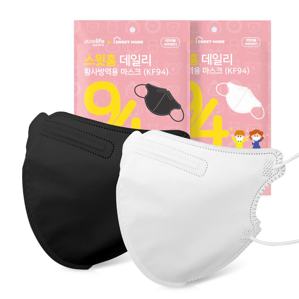 스윗홈 데일리 KF94 마스크 새부리형 소형 100매 (화이트/블랙)