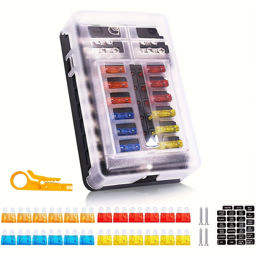 TEMU 12극 양극 다중 채널 퓨즈 박스 LED 표시등 포함, 자동차 및 선박용 편리한 퓨즈 시트 5A/10A/15A/20A - , 차량, 트럭 등에 적합