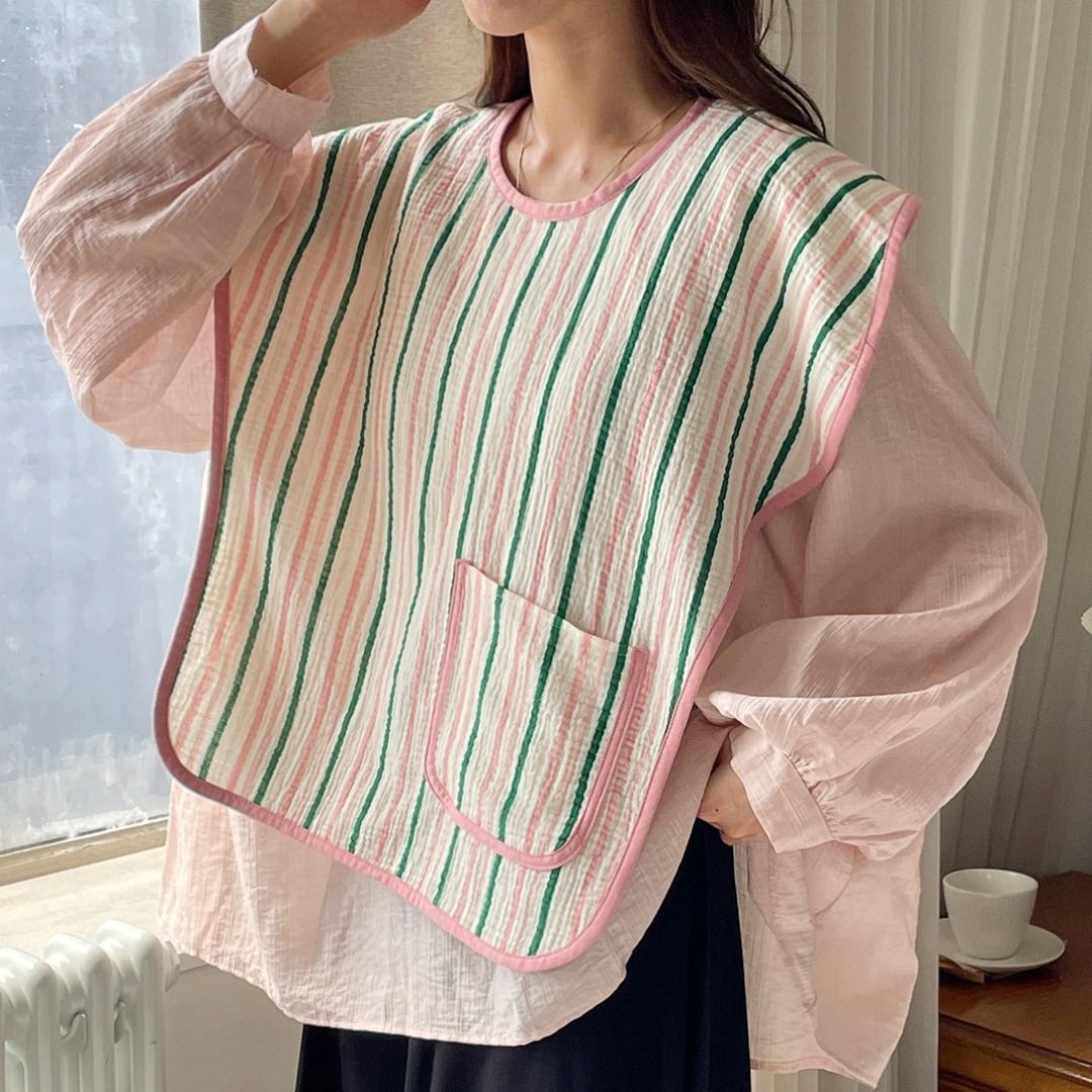 엄마 턱받이 수유 앞치마 3중 거즈 아기 거즈 이유식 침받이 가운 핑크 트림패드