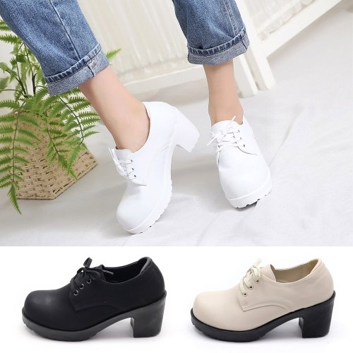 여성용 KC-7011 둥근코 레이스업 가보시 구두 여자구두 로퍼힐
