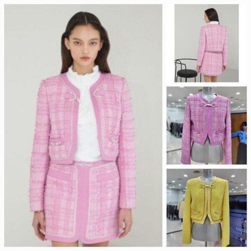 [에고이스트]체인 포인트 트위드 노카라 숏 자켓 EQ1WJ260_DG