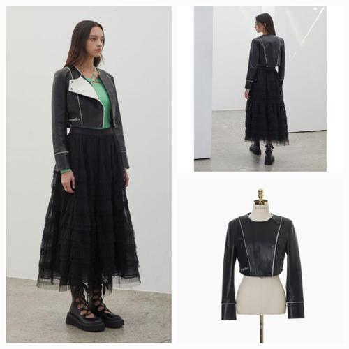 [에고이스트]리얼 레더 컬러 배색 크롭 자켓 EQ1LJ260_DG