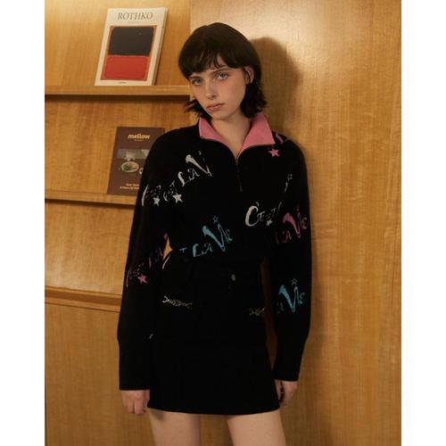 [에고이스트] ER3OKL02 V넥 하트 비죠 레터링 니트탑